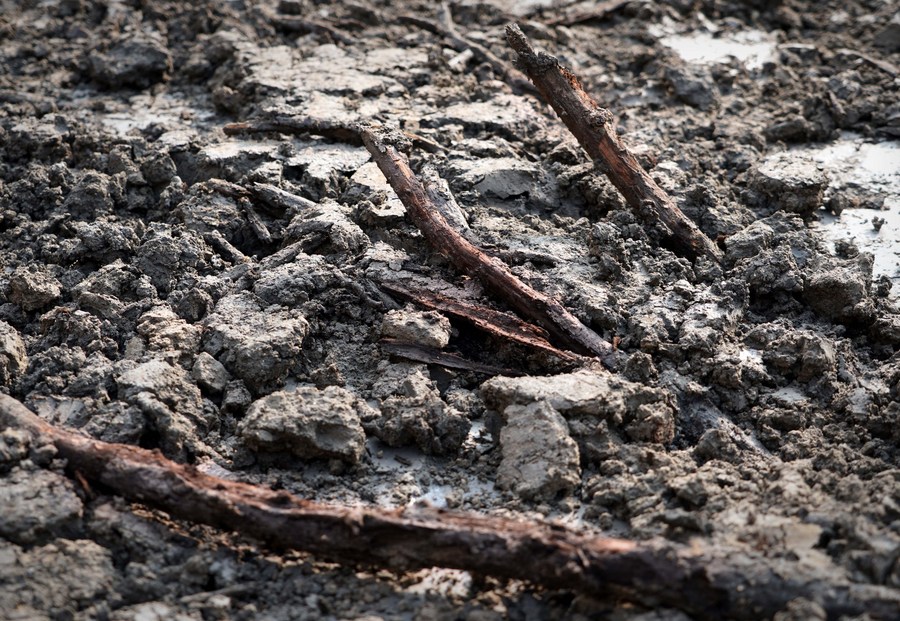 Para arkeolog menemukan cabang cemara di situs peninggalan di Shangqiu, Provinsi Henan, Tiongkok tengah, pada 6 Januari 2023. (Xinhua/Li An)