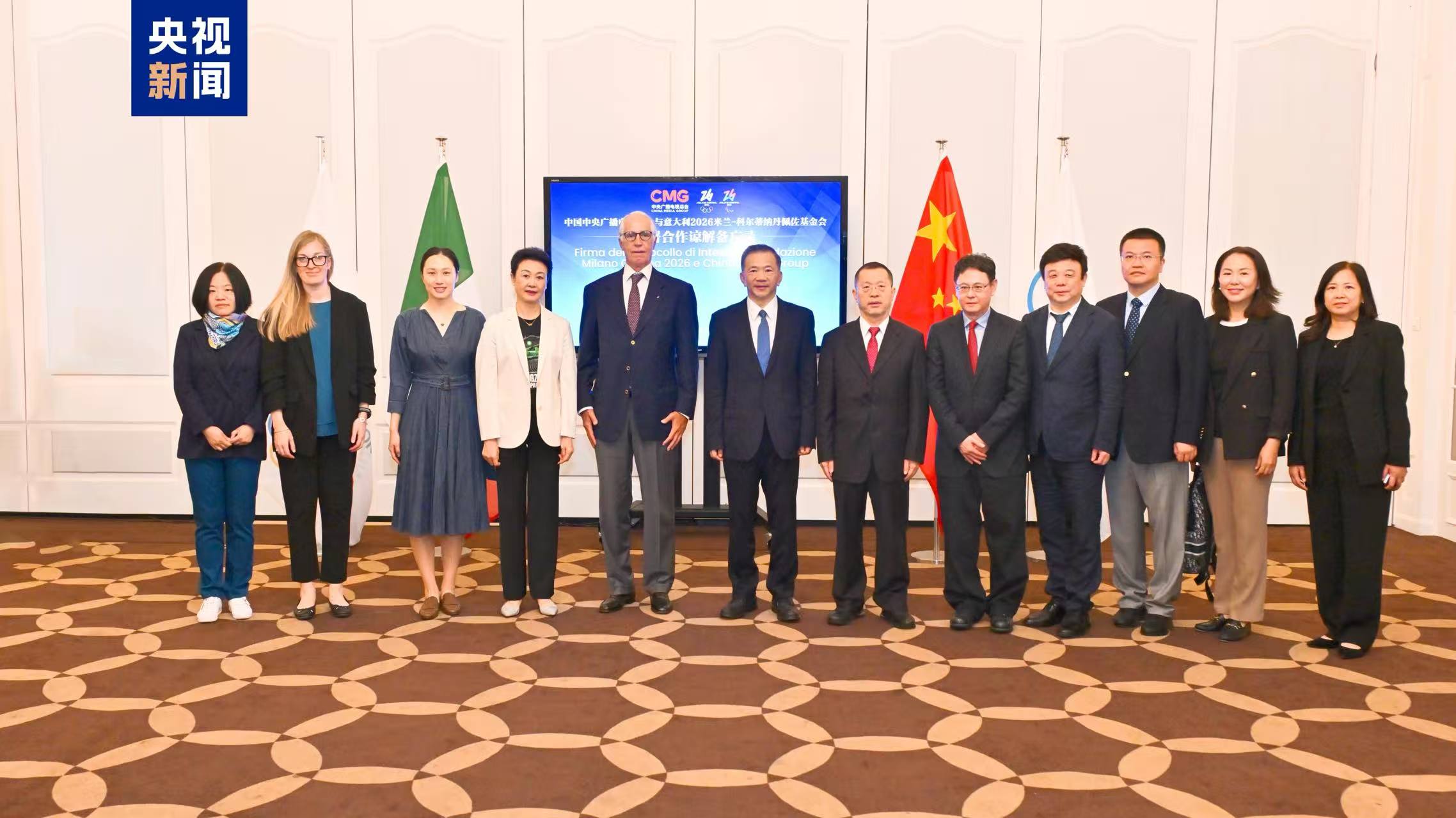 Pada tanggal 23 Juni waktu setempat, China Media Group (CMG) dan Yayasan Cortina Danpezzo Milan 2026 menandatangani nota kesepahaman kerja sama di Lausanne, Swiss. Kedua pihak mencapai konsensus untuk memperdalam kerja sama dalam promosi, siaran pertandingan, serta saling kunjungan dan pertukaran personel dalam Olimpiade Musim Dingin Cortina Danpezzo Milan 2026. CMG secara resmi menjadi lembaga penyiaran berlisensi untuk Olimpiade Musim Dingin 2026 tersebut. Wakil Menteri Departemen Publisitas Komite Sentral Partai Komunis Tiongkok (PKT) selaku Presiden CMG Shen Haixiong, Presiden Komisi Olimpiade selaku Ketua Panitia Olimpiade Musim Dingin Giovanni Malag", mewakili kedua pihak membubuhkan tandatangan. Acara ini juga disaksikan oleh anggota Komite Eksekutif IOC Li Lingwei, anggota IOC Zhang Hong, serta pejabat dari IOC dan lembaga terkait Olimpiade Musim Dingin Milano.